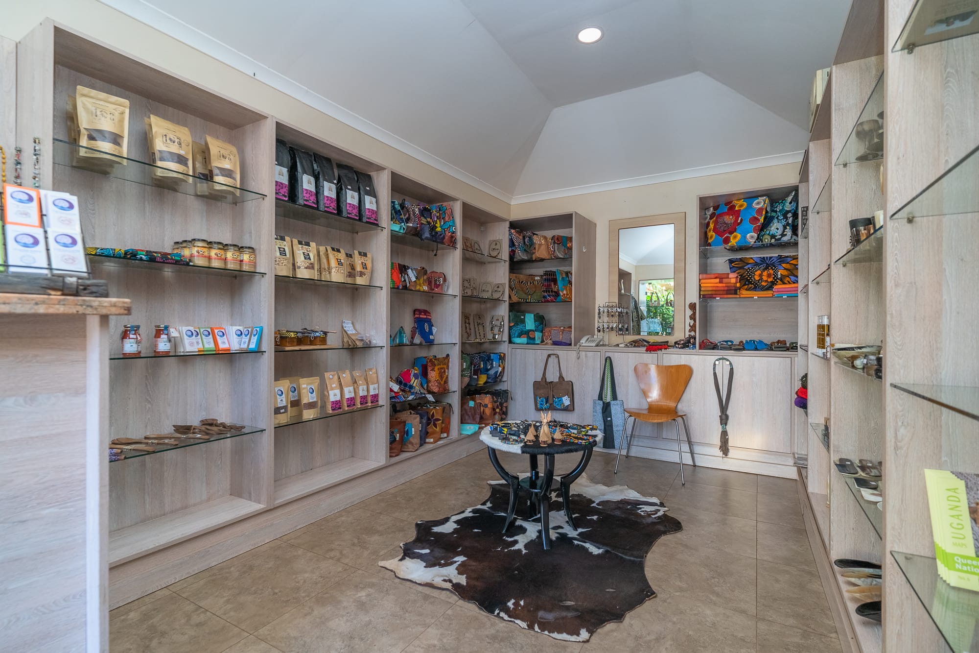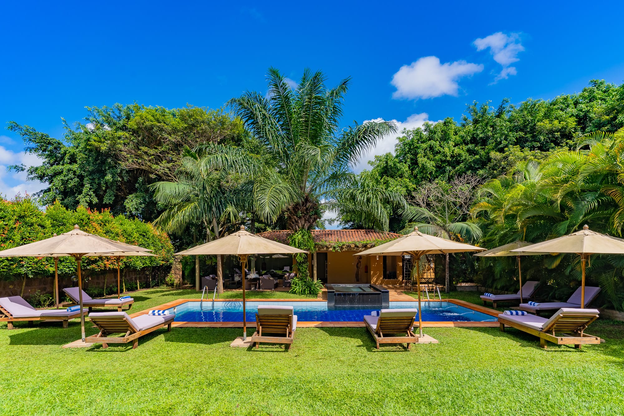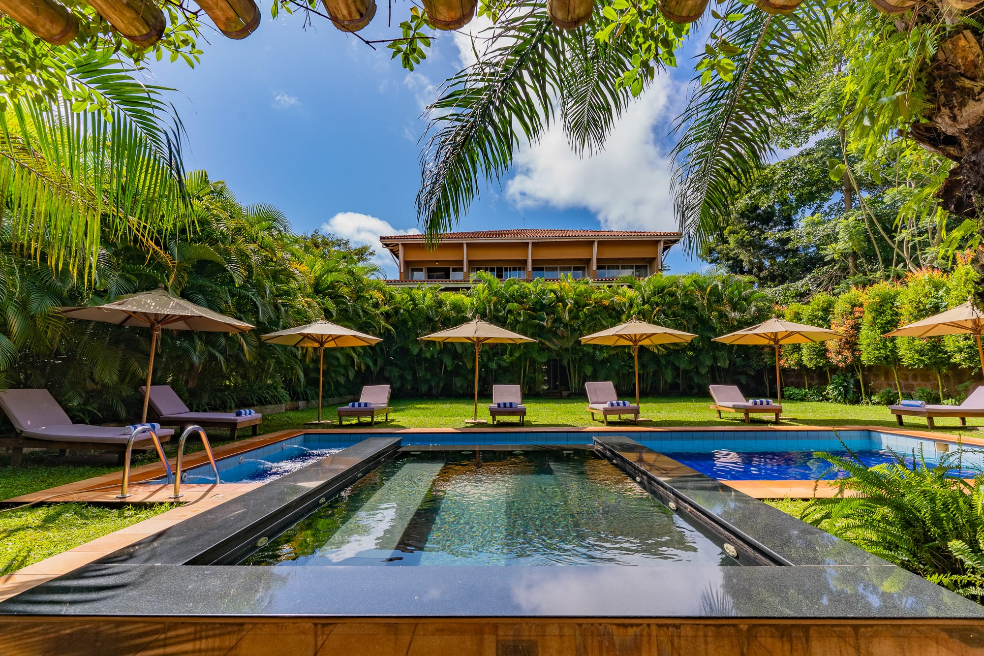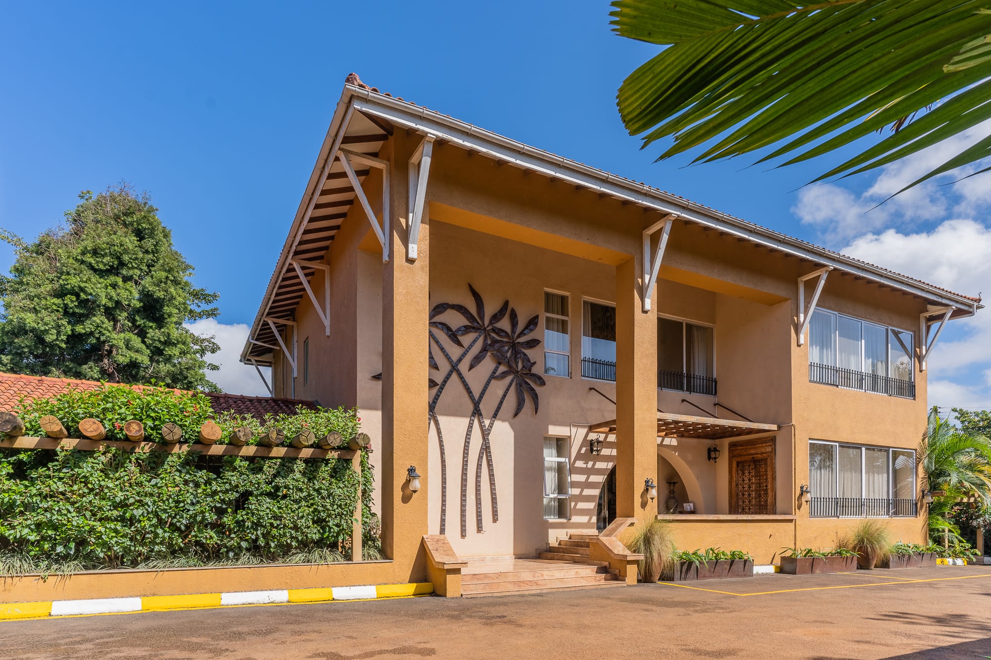 The property blends contemporary design with local craft โ a mix of clean furnishing and Ugandan-made detailing that runs through the rooms, lounge areas, and courtyard. The grounds include mature tropical planting and sightlines toward Lake Victoria and the adjacent botanical gardens.