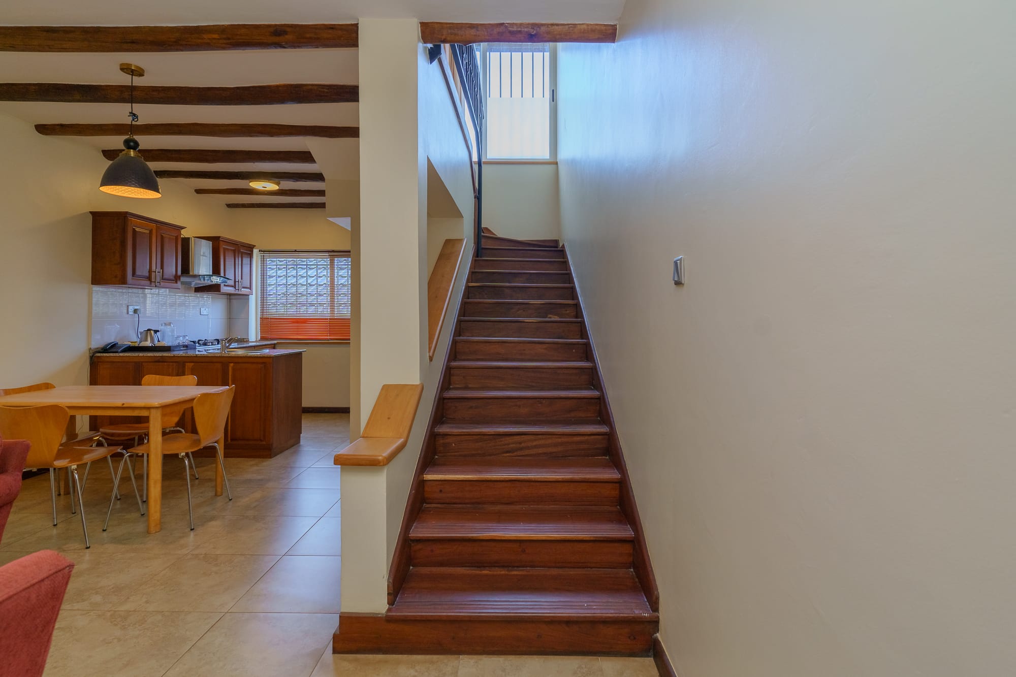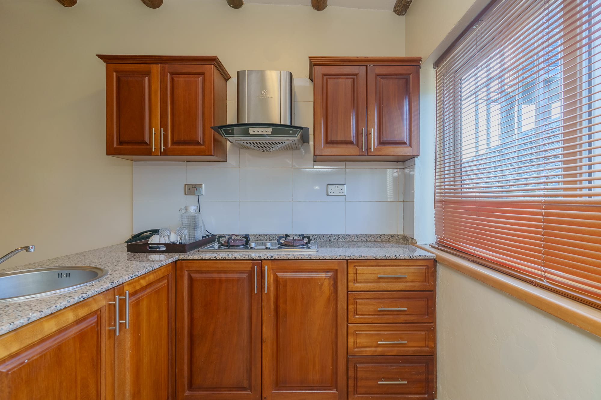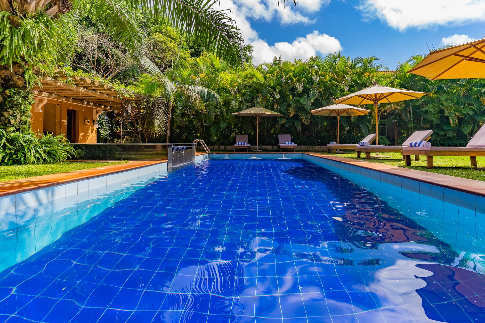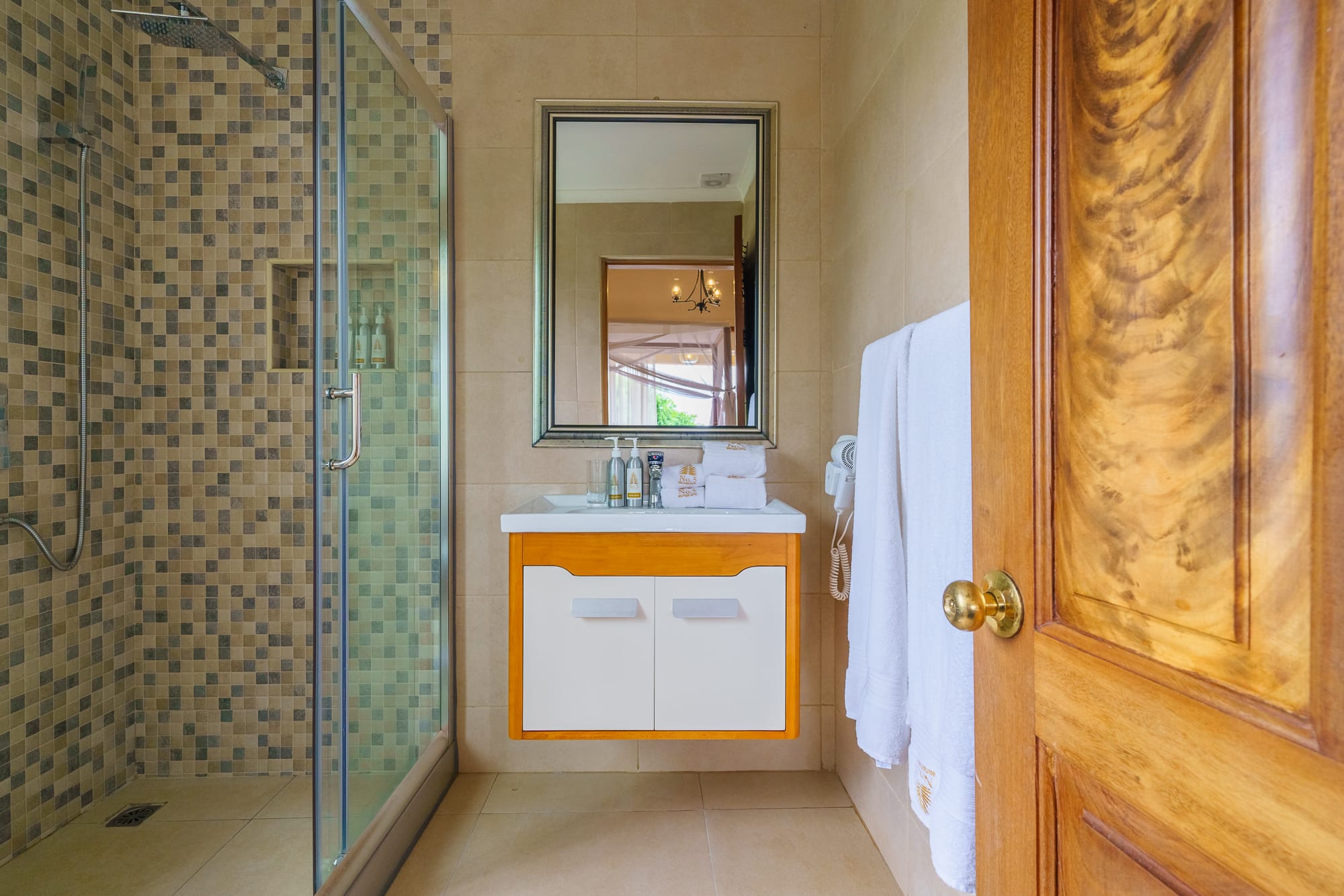 The property blends contemporary design with local craft โ a mix of clean furnishing and Ugandan-made detailing that runs through the rooms, lounge areas, and courtyard. The grounds include mature tropical planting and sightlines toward Lake Victoria and the adjacent botanical gardens.