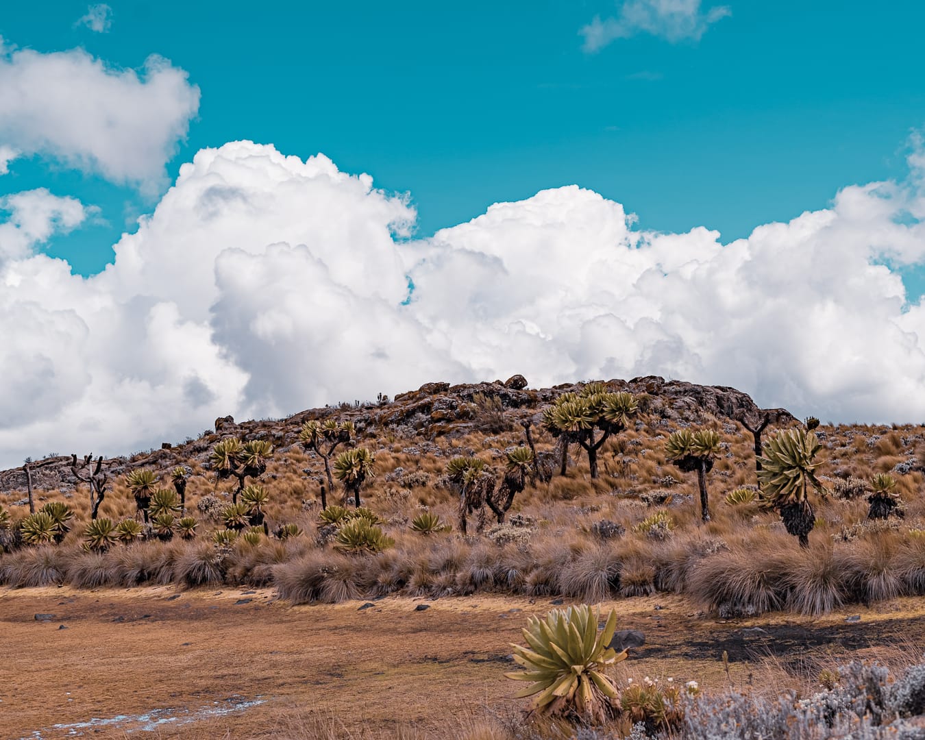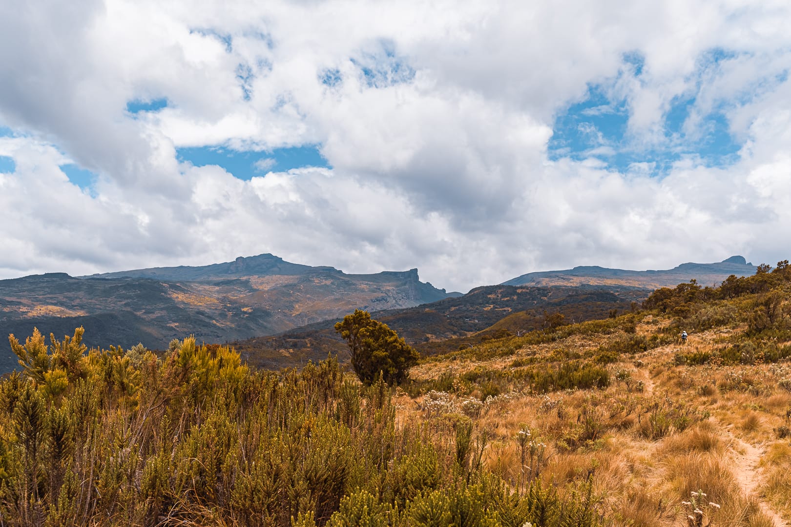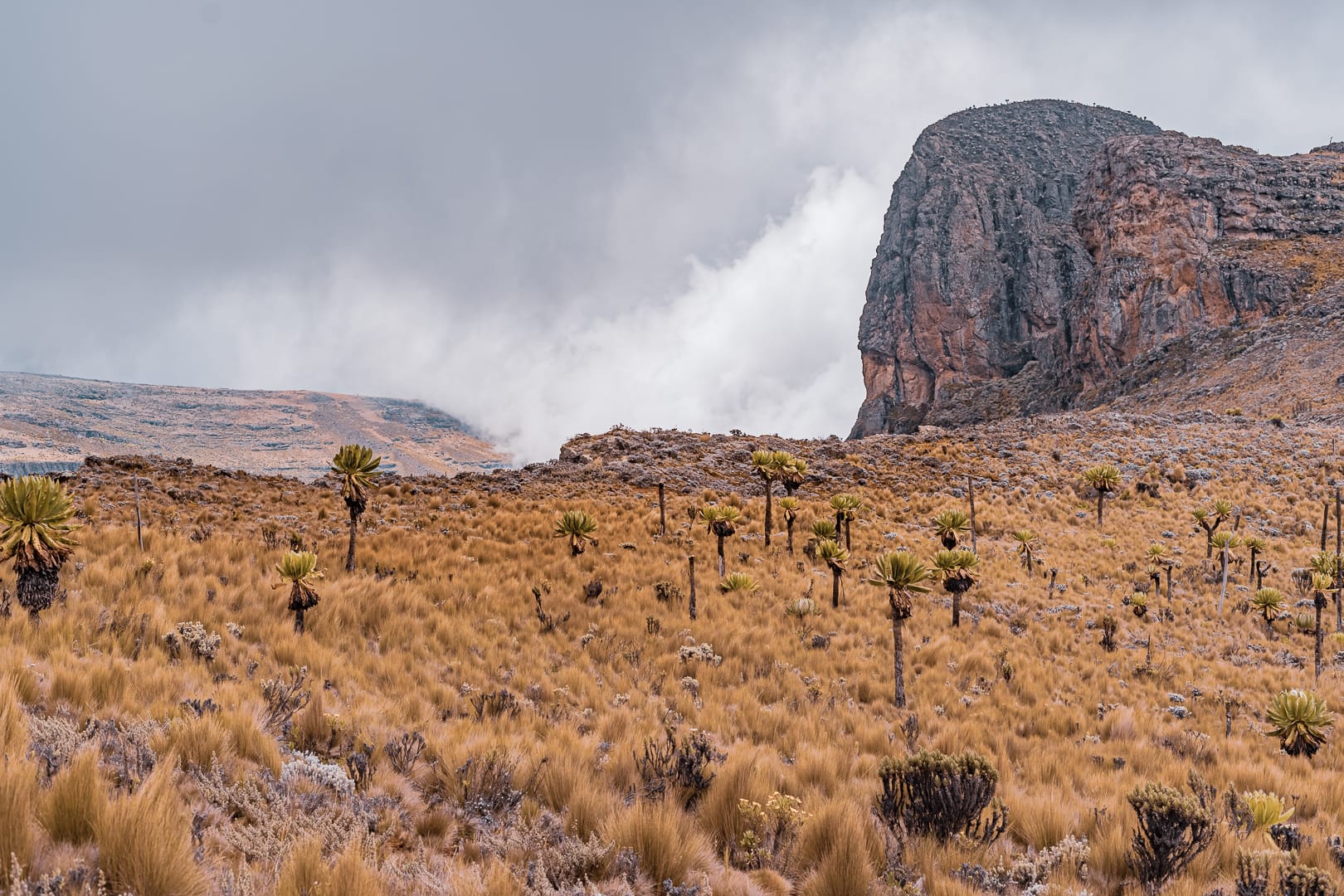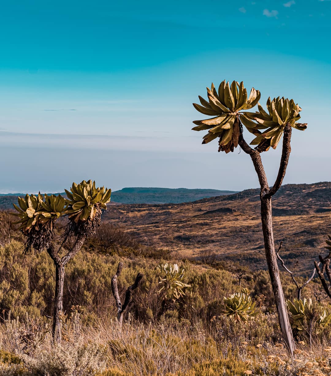 Elgon rises to 4,321 metres (14,177 feet) and features one of the largest intact calderas in the world. The mountain supports a series of distinct vegetation zones as altitude increases — from montane forest through bamboo belt to alpine moorland near the summit. Crater lakes sit within the caldera floor.