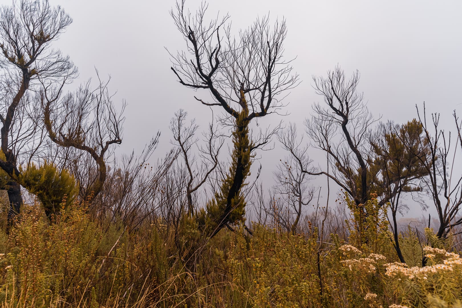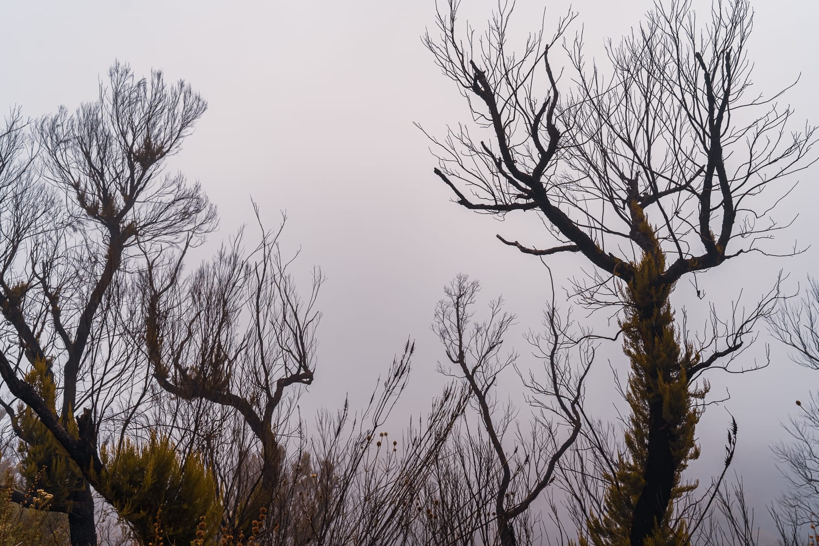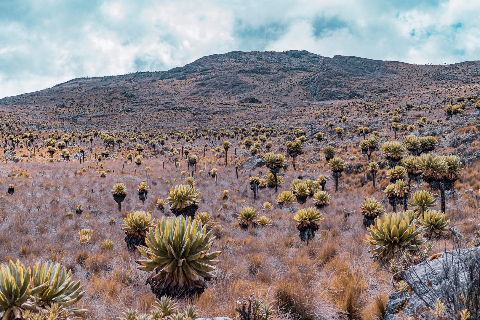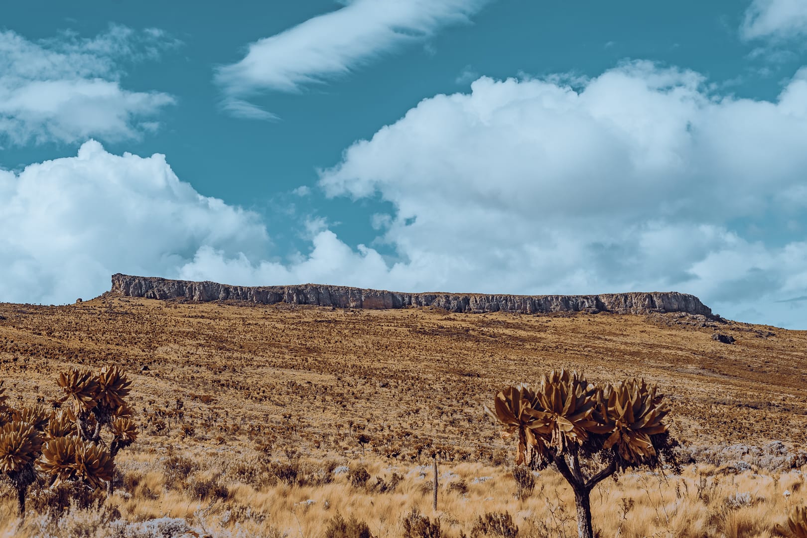 The series covers the mountain's upper slopes, ridgelines, and the broad views across the surrounding lowlands of eastern Uganda. The climate is notably cooler than the plains below, and cloud cover is frequent, producing soft and variable light conditions.