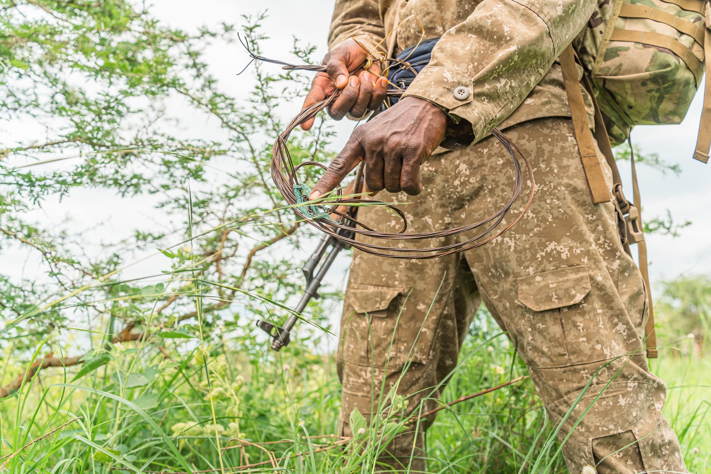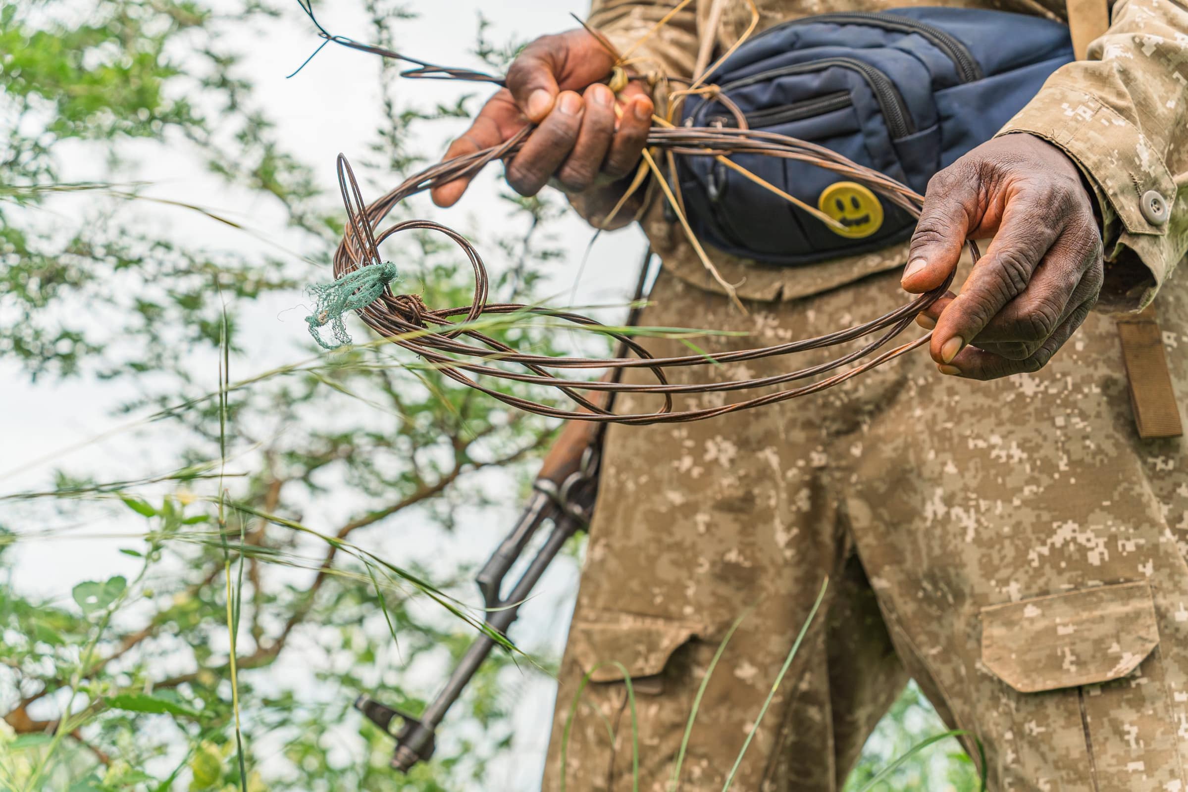 Threat Extraction: Visual recording of ranger-led patrols focused on the detection and decommissioning of wire snares to ensure area integrity.